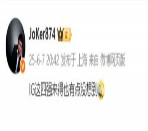 赛后前LPL教练Joker吐槽:IG这四强来得也有点没想到。
