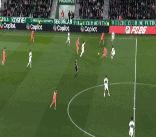 第6分钟,奥尔莫直塞打穿埃尔切的后防线,亚马尔反越位杀入禁区,过掉佩尼亚后推射空门得手,巴萨还是取得梦幻开局,1-0!