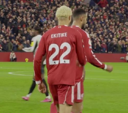 上半场,在被戈登率先进球之后,维尔茨站了出来,他在禁区内漂亮过人后横敲,埃基蒂克跟进一脚近距离推射,稳稳把球打进,为利物浦扳平比分。之后不久,埃基蒂克再进1球,半场结束,利物浦2-1反超比分。