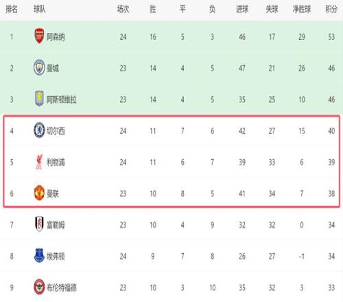 41!英超2强逆转:切尔西利物浦反超+3队差2分,曼联争四大热门
